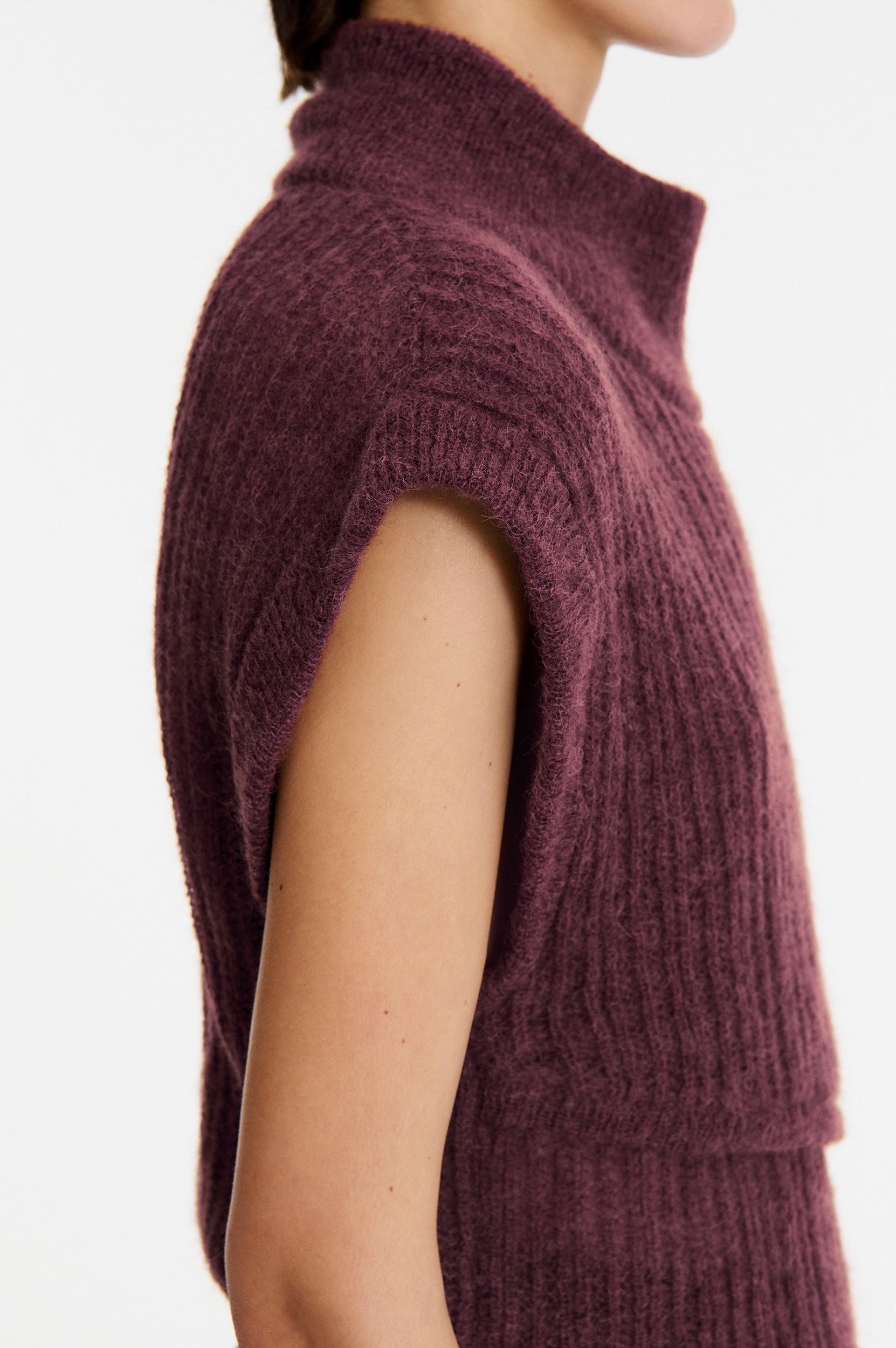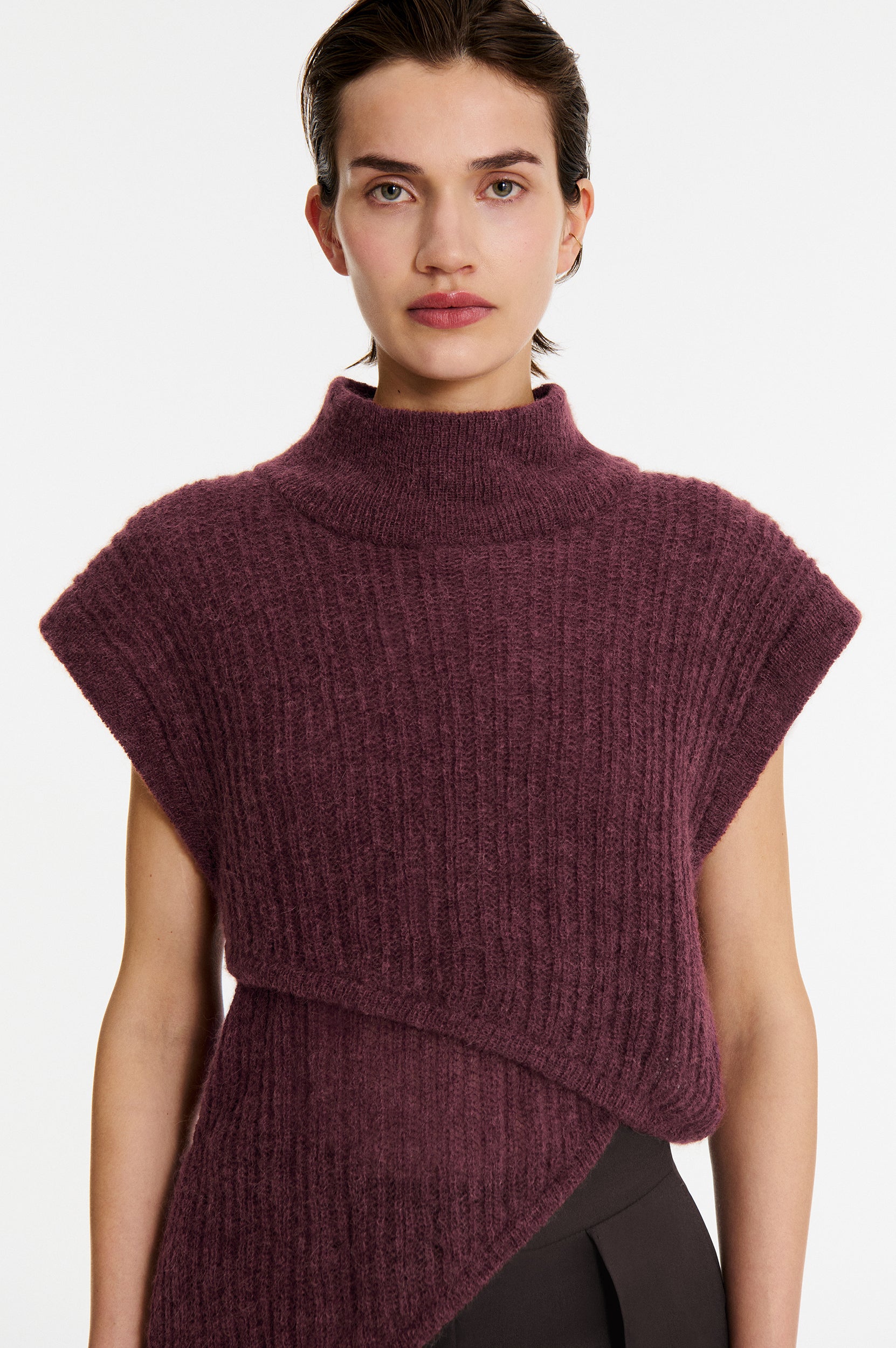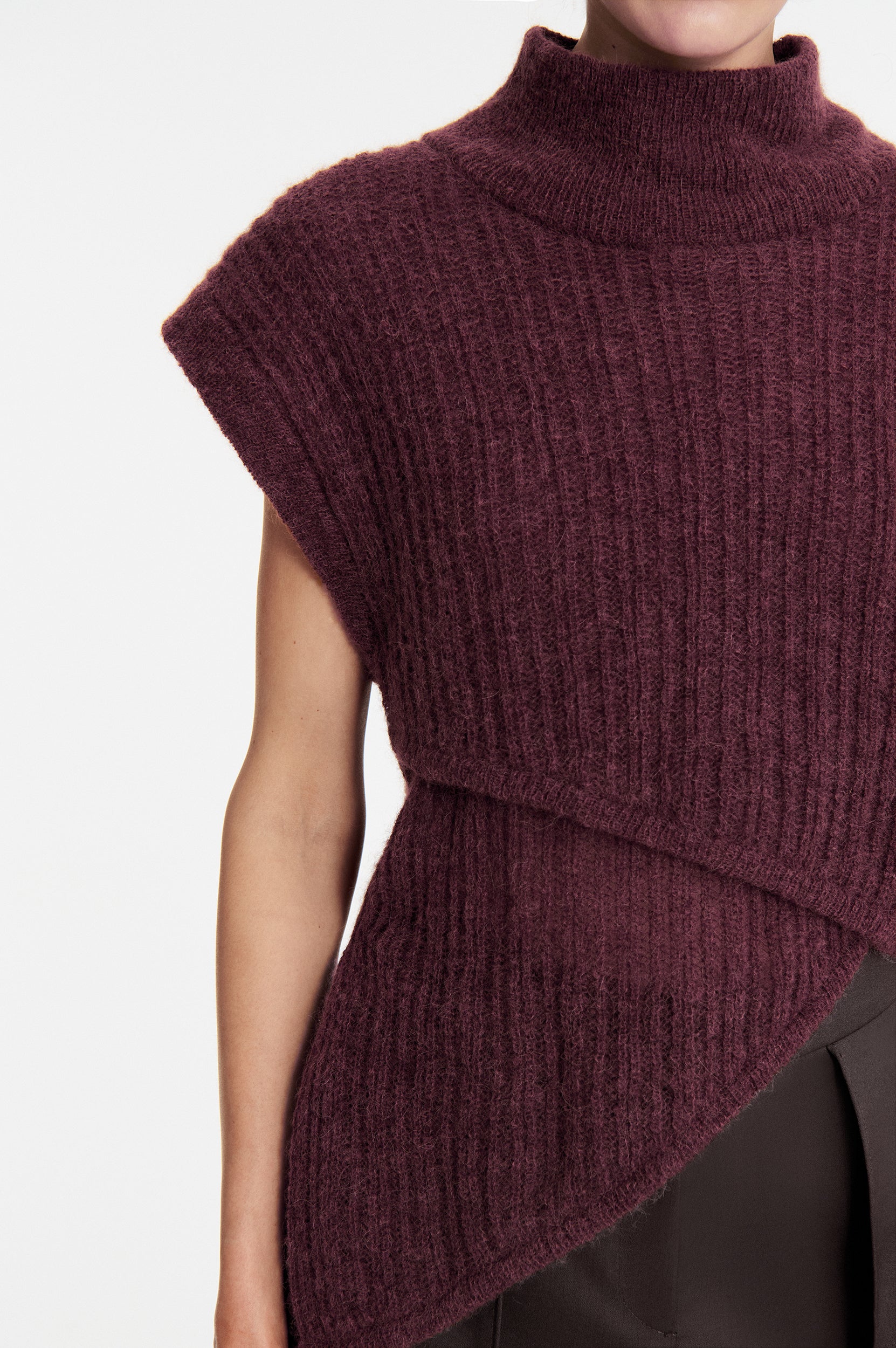 • Pull asymétrique sans manches avec col montant